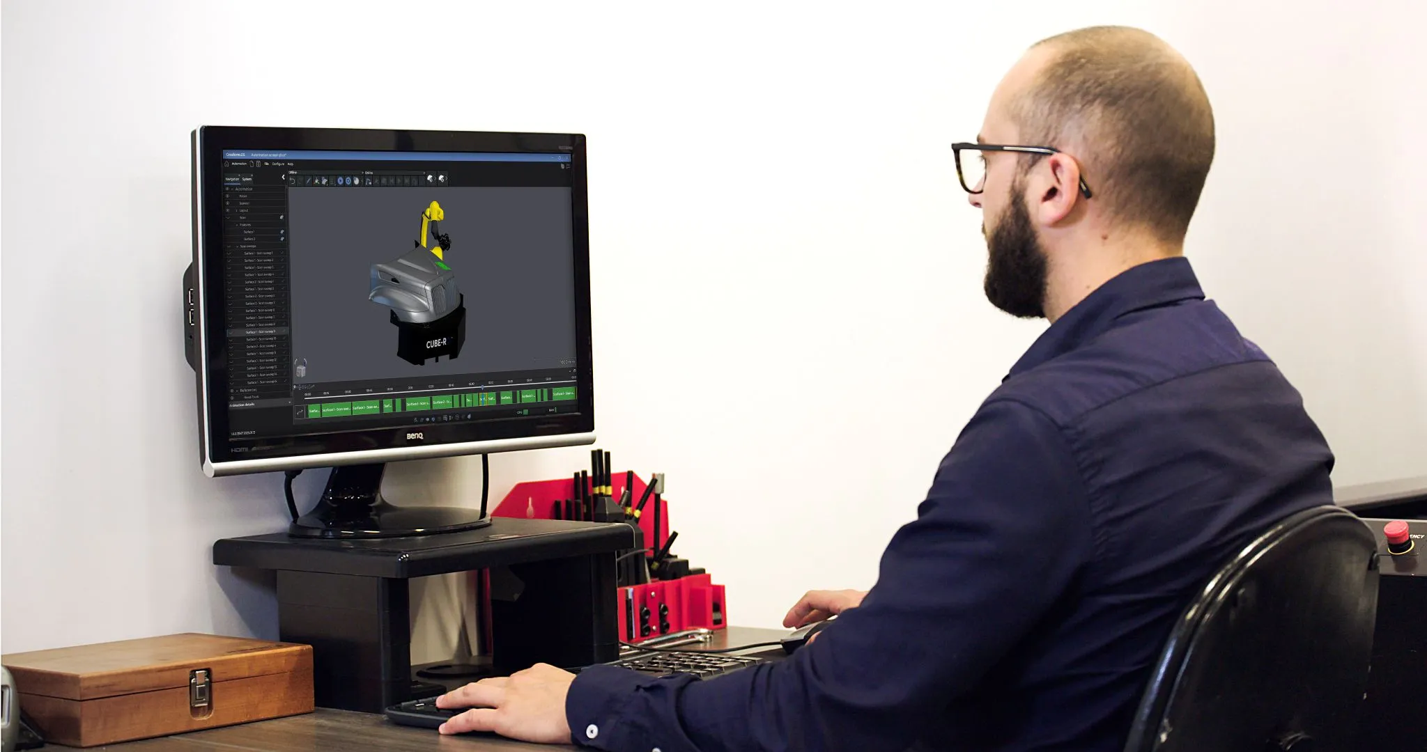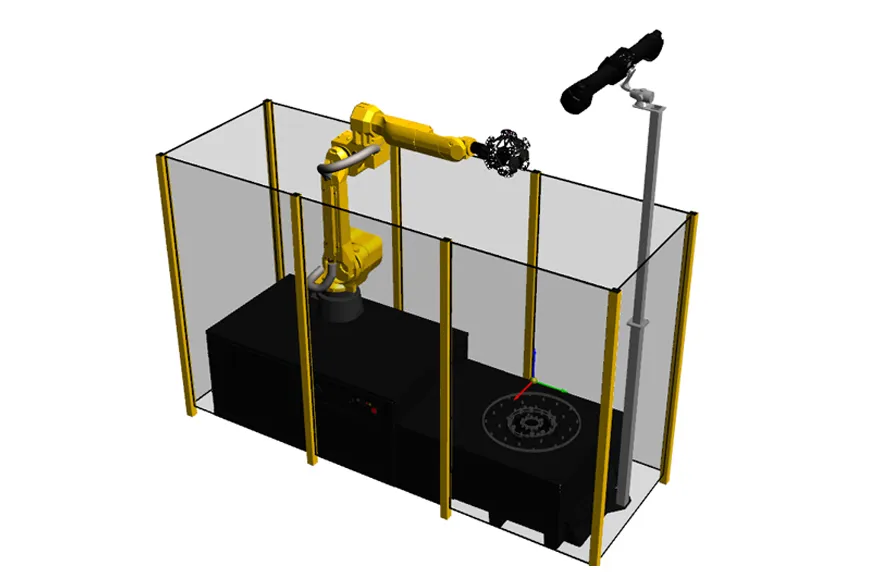 완벽한 턴키 솔루션 또는 고객 맞춤형 자동화 로봇 셀과 호환됩니다. 안전 인클로저 및 턴테이블의 CAD 파일을 기반으로 로봇 셀을 구성한 후, C-Track 위치, 캘리브레이션 경로 및 기타 주요 파라미터를 정의할 수 있습니다.