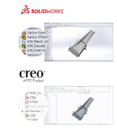 SolidWorks, Siemens NX, Autodesk Inventor, PTC Creo 같은 CAD 시스템 사용자라면 3차원 스캐닝 기술을 활용하여 모델링 작업을 더 빨리 진행할 수 있습니다. Design X에서 설계한 데이터는 마치 처음부터 여러분이 보유하고 있는 CAD 시스템에서 설계한 것처럼 완벽하게 호환됩니다.