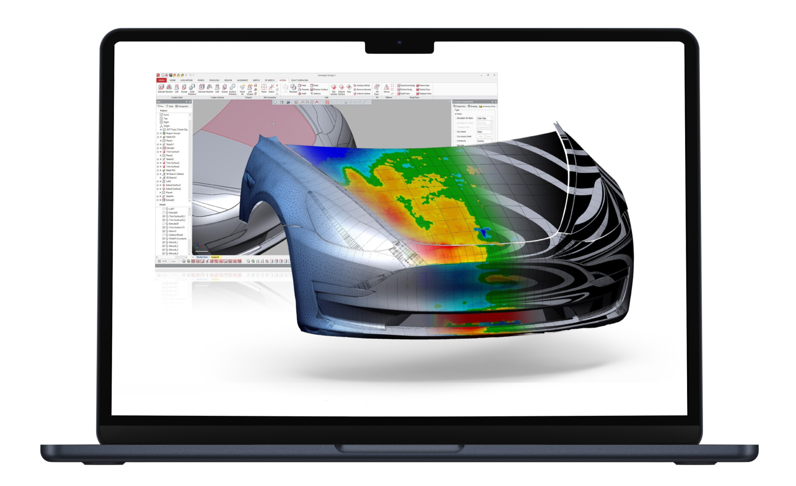 Design X의 역설계 기능을 통해 모델링이 불가능해 보이는 복잡하고 세밀한 형상까지 생성할 수 있습니다. 실제 제품의 형상과의 오차를 최소화 해야 하는 의료기기나, 자동차, 항공기 부폼의 모델링이 이에 해당됩니다.