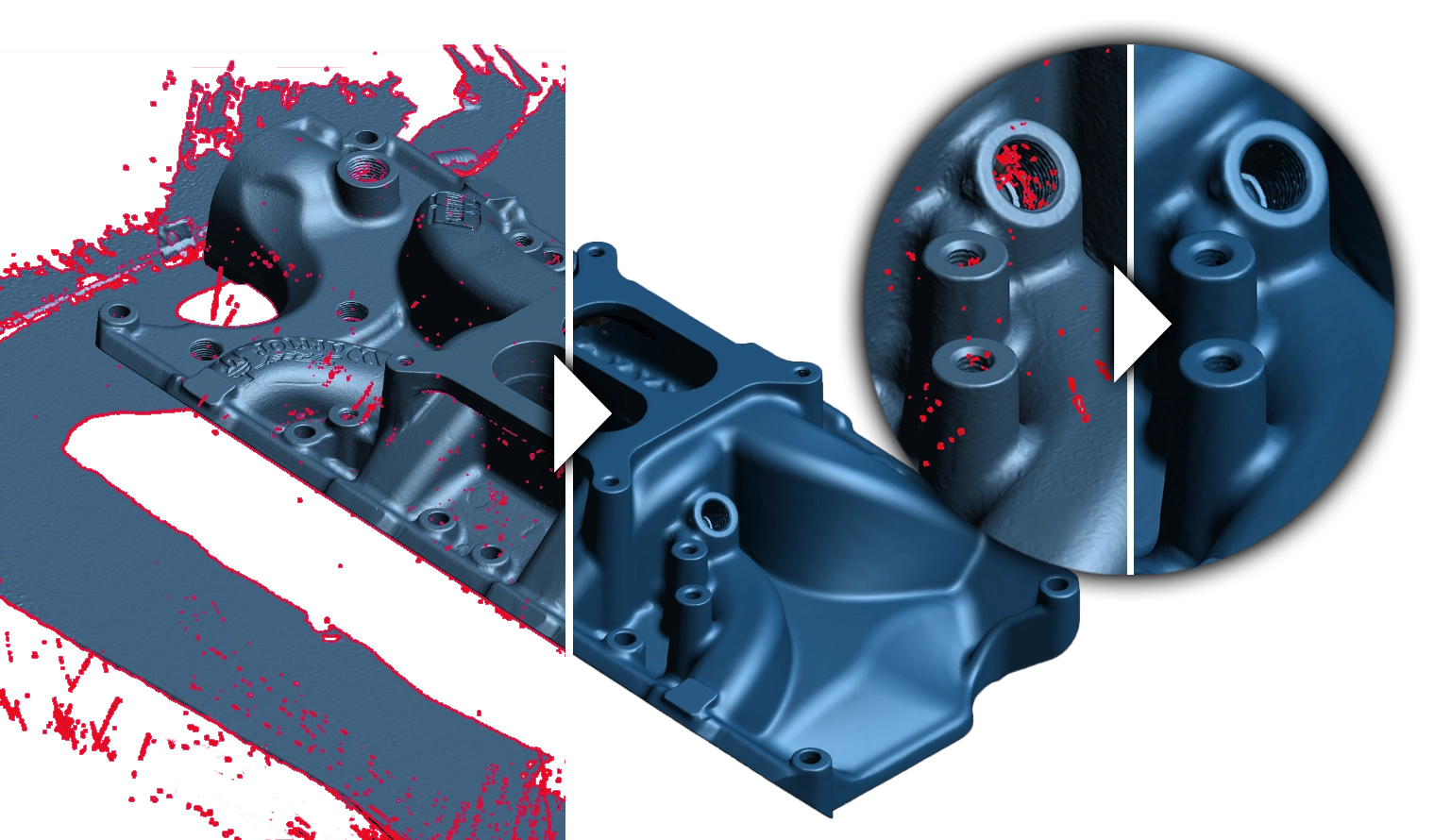 역설계 또는 3D 프린팅 작업을 위해 최적화된 3D 스캔 메쉬 및 형상 데이터 결과물을 제공합니다.