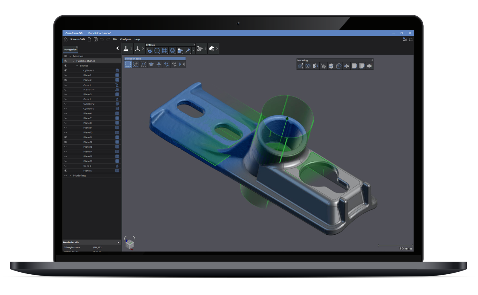 Creaform Metrology Suite™의 Scan-to-CAD는 스캔 결과물의 후처리를 위한 소프트웨어 모듈로 3D 프린팅 작업 최적화 및 메쉬 가공 후 설계 반영을 지원합니다. 이를 통해 설계 엔지니어는 3D 데이터를 최종 완성하고 역설계 및 제품 개발 워크플로우를 완성합니다. 또한 메쉬를 빠르게 최적화하고 필요한 모든 기하 정보를 빠르게 추출하여, 설계자와 역설계 엔지니어가 업무에 즉시 복귀할 수 있도록 돕습니다. 최고의 성능과 완성도 높은 기능의 이 모듈은 수많은 고객의 신뢰를 바탕으로, 설계 CAD 소프트웨어를 보완하는 최적의 솔루션으로 선택되고 있습니다.
