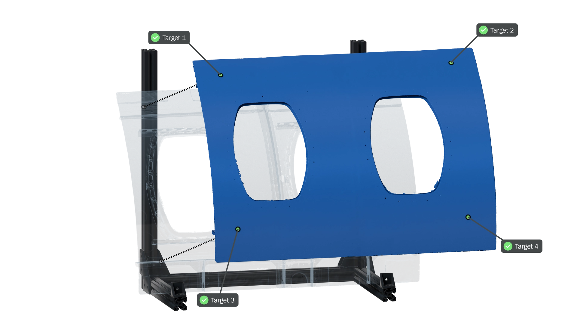Creaform Metrology Suite™의 다이내믹 트래킹은 생산 및 프로세스 엔지니어가 3D 공간에서 시간의 흐름에 따른 여러 물체의 위치와 방향을 추적할 수 있도록 지원하는 소프트웨어 모듈입니다. 모든 물체의 실시간 기록 및 측정이 가능하여 변위를 제어하고 조립 프로세스 및 변형의 편차를 측정할 수 있습니다. 또한, 로봇 교정 및 티칭 보정, 복잡한 조립 프로세스 모니터링, 제조 중 공작 기계 위치 오류 보정, 테스트 중 변형 보정 등 다양한 응용 분야에서 사용됩니다.